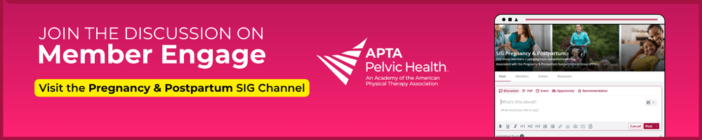 The PPSIG provides a forum to connect PTs, PTAs, and SPTs from a variety of clinical disciplines that promotes networking and cross-leveling of information about musculoskeletal evaluation, treatment, and wellness during and after pregnancy. Year-round, the PPSIG hosts virtual events such as workshops, webinar panels or social meet and greets to connect you to fellow professionals and industry experts interested in or who specialize in pregnancy/postpartum topics.