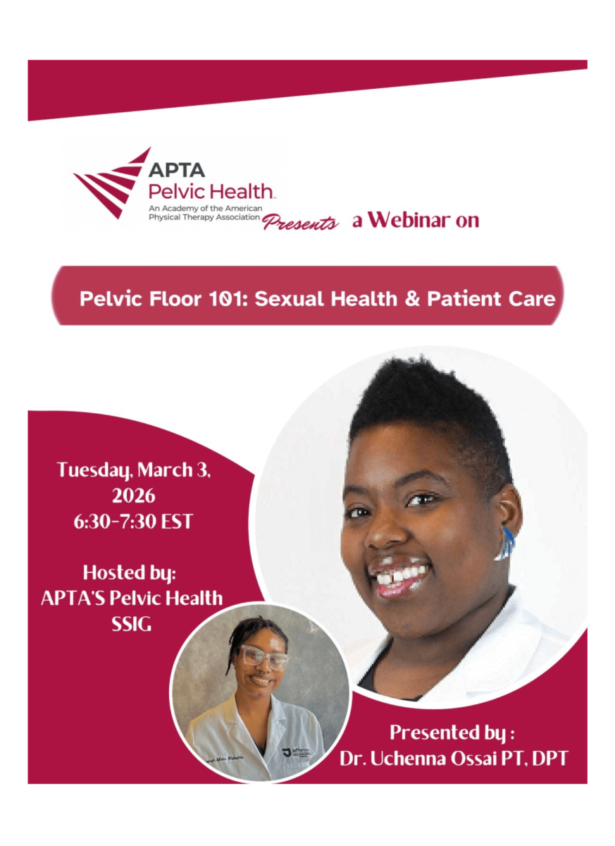 Pelvic Floor 101: Function, Sexual Health & Patient Care is an educational webinar designed primarily for students, while also welcoming early-career and experienced clinicians who wish to strengthen or refresh their foundational understanding of pelvic floor and sexual health. Hosted by Dr. Uchenna Ossai, a pelvic floor physical therapist and sexual health expert, this session introduces essential concepts related to pelvic floor anatomy, function, and its role in sexual health and overall well-being.